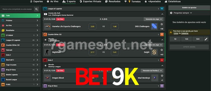 O Bet9K oferece uma grande seleção de opções de apostas em e-sports com probabilidades competitivas